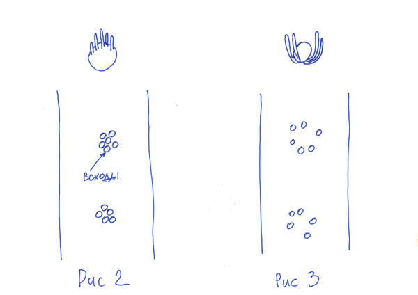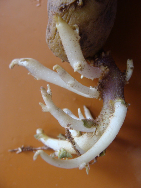 Исследуя этот приём, я смоделировал развитие картофеля высаженного ростками вниз. Это можно увидеть на фотографиях 6, 7, 8: