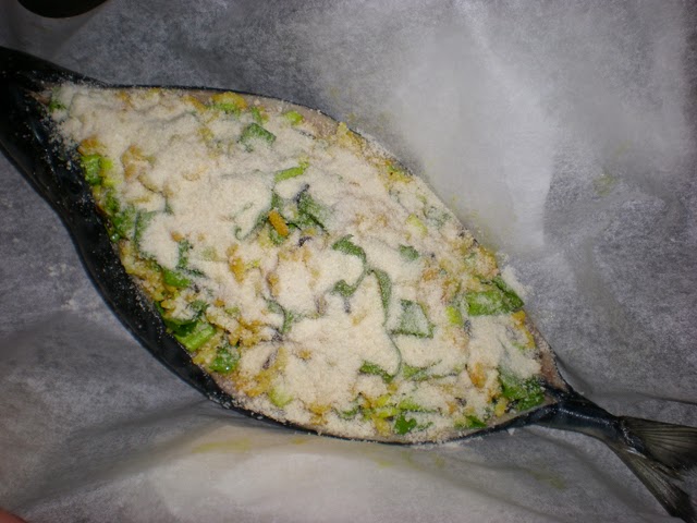 Итак, скумбрия, фаршированная рисом и зеленью. Вкусно, полезно, ароматно и красиво! Эффектно смотрится на праздничном столе.