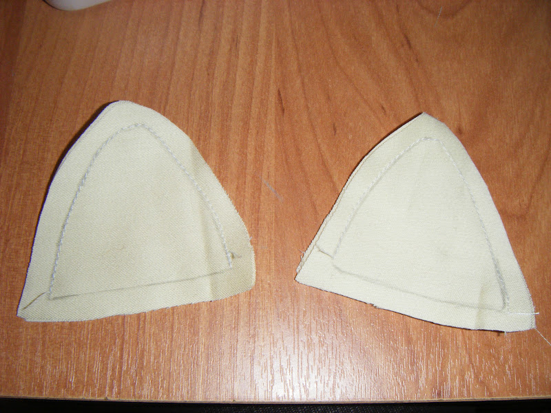 Теперь, клинья, которые мы вырезали попарно, берем 1 пару и вставляем уже вывернутое ухо внутрь, можно заколоть иглой и слегка вывернуть, чтобы посмотреть, нравится нам или нет...