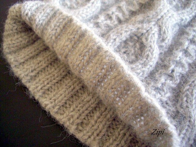 Во-вторых, не нужно переставлять петли. При итальянском наборе провязывается 2-4 ряда полой резинки 1х1 и потом изнаночные и лицевые петли переставляются местами для резинки 2х2. Это заметно по нижнему краю.