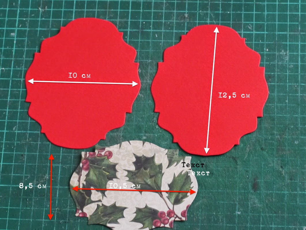 Делаем 2 детали, которыми будем укреплять верх и низ коробочки, из дизайнерского картона Мурилло, а также одну деталь чуть меньшего размера из скрап-бумаги.