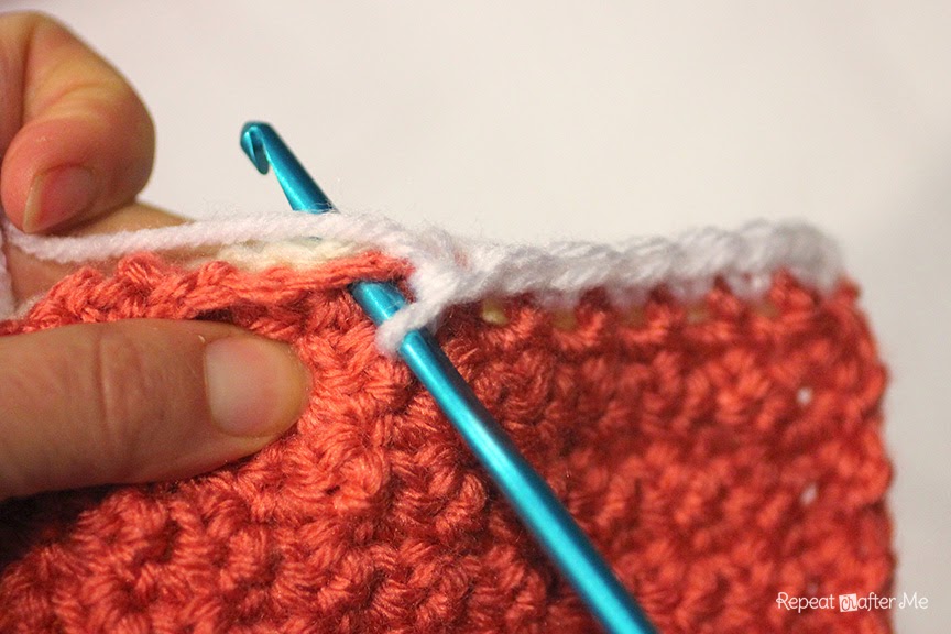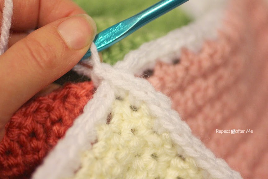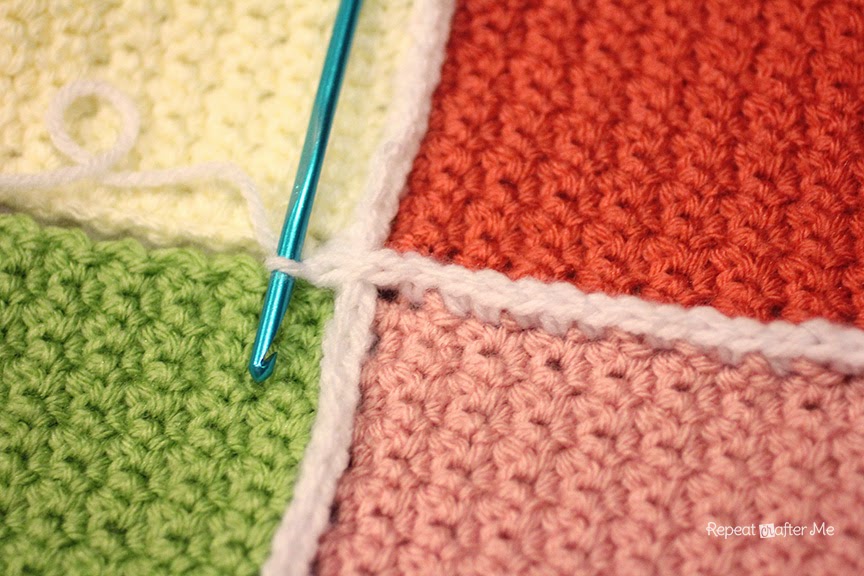Когда вы дойдете до конца ряда, держите следующие два квадрата вместе и продолжайте соединять.