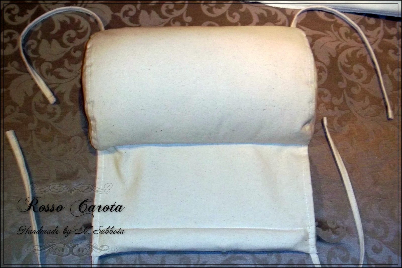 Распарываем чехол, укорачиваем его заднюю часть, из обрезков ткани шьем 4 завязочки, за которые будем крепить подушку в изголовье.