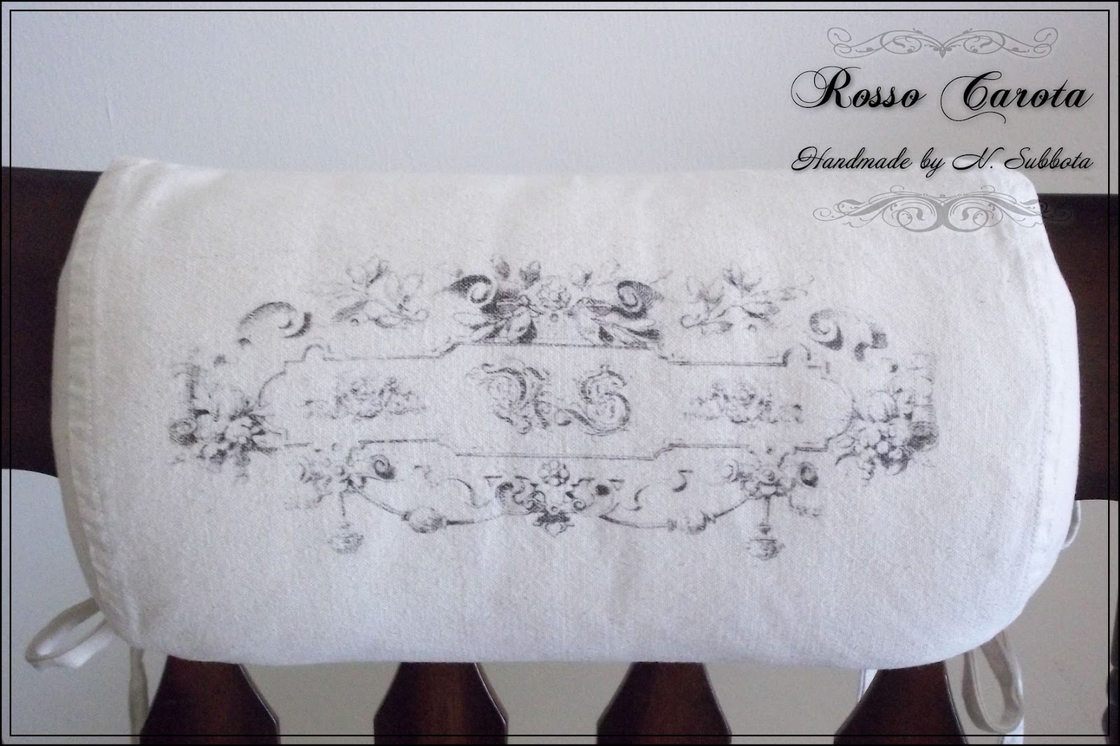 Распечатываем картинку-рамочку, в которую предварительно вставляем свои инициалы, и переводим ее на чехол для подголовника.