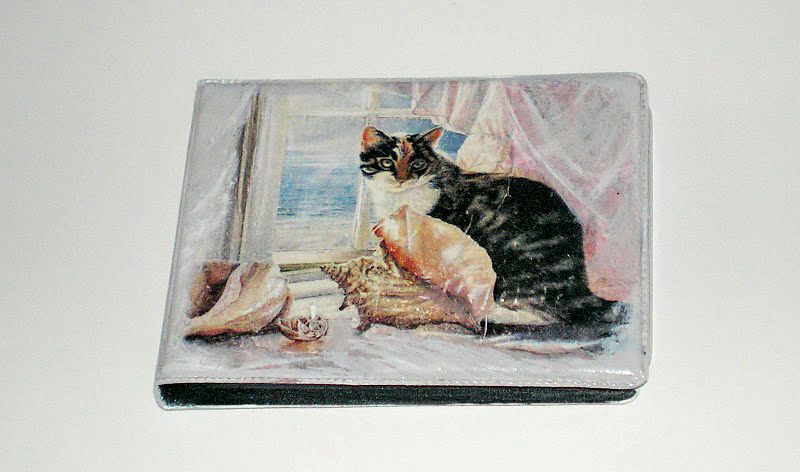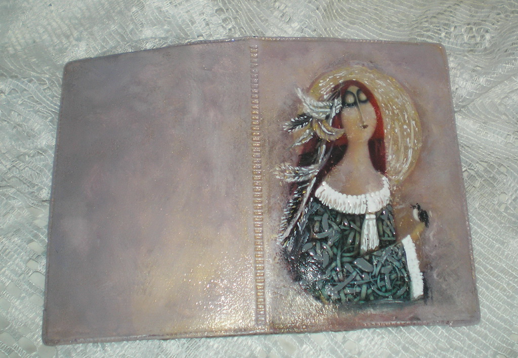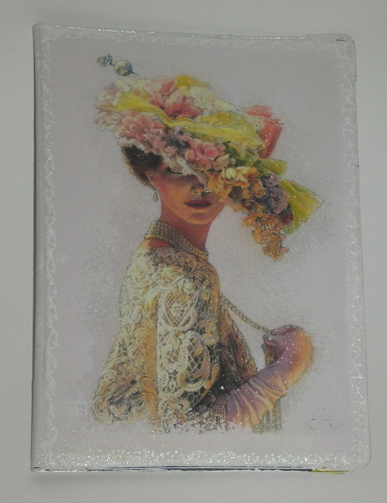 Ну здесь совсем ничего особенного, кроме того, что салфетки - два слоя :-)). Обнаружила я это уже в процессе наклеивания и запаниковала. А зря. Клеила не с помощью файла, а кисточкой от центра - быстро и без проблем. Вот, думаю теперь, может, и с ангелами нужно было так же? У меня фрагментик остался...
