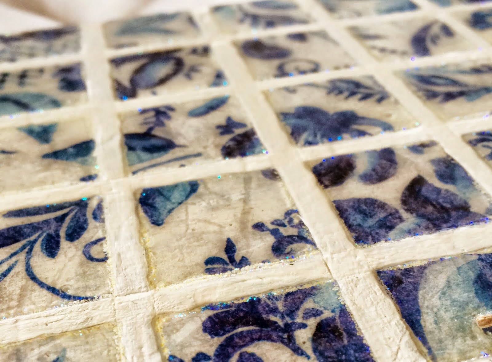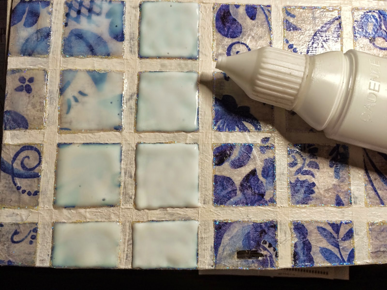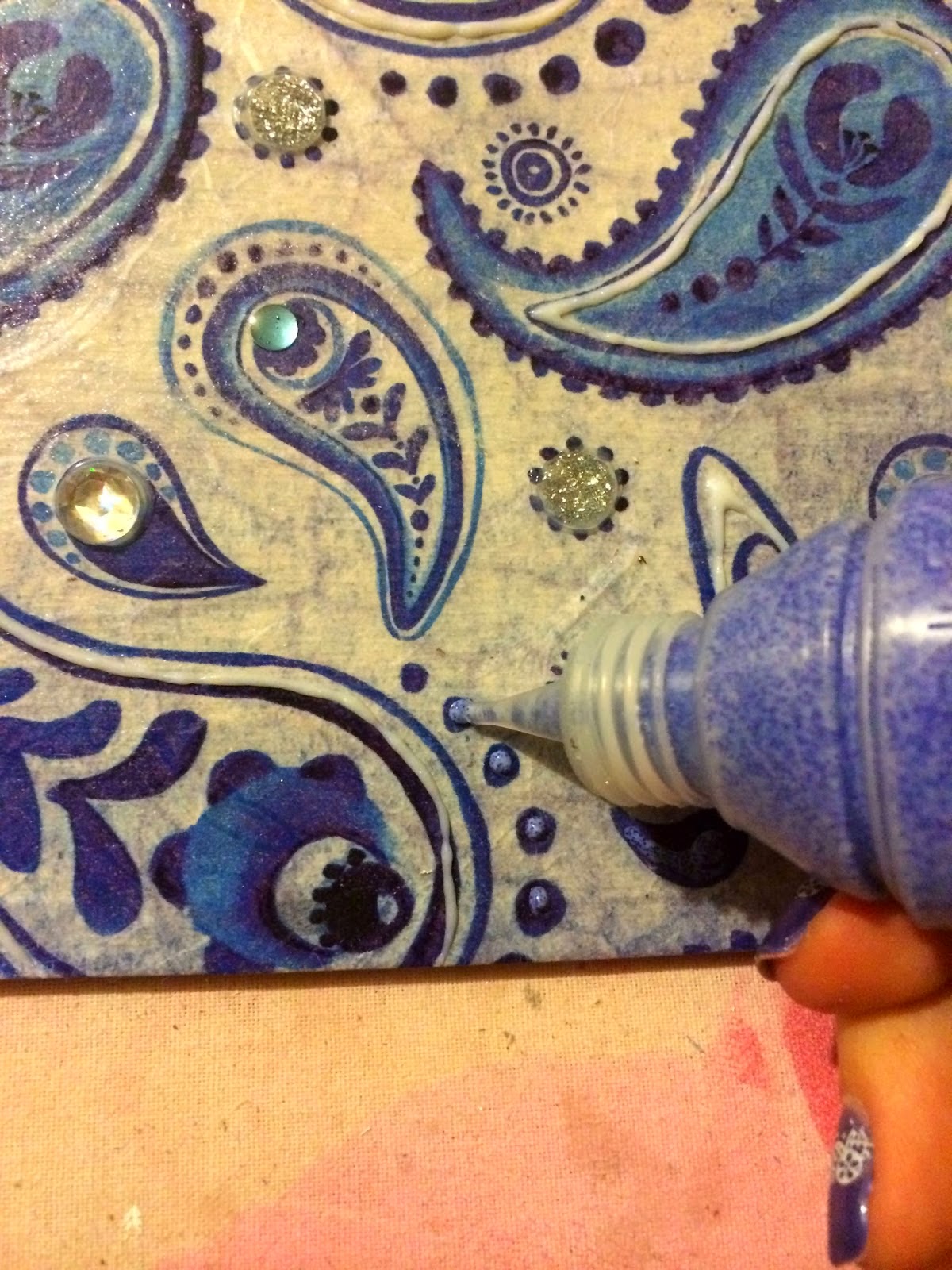 Каждую плиточку обводим белым перламутровым контуром от CADENCE.