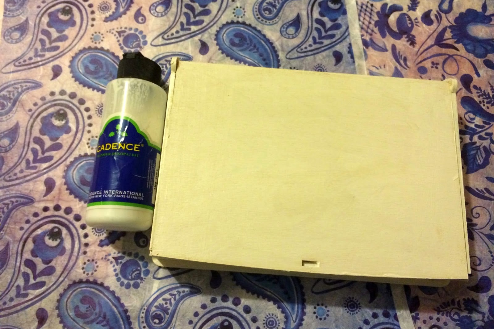 Итак приступим, у нас есть деревянная заготовка, и мы должны ее загрунтовать. Универсальная акриловая краска CADENCE настолько плотная и кроющая, что использовать специальный грунт не требуется. Грунтуем шкатулку как внутри, так и снаружи.