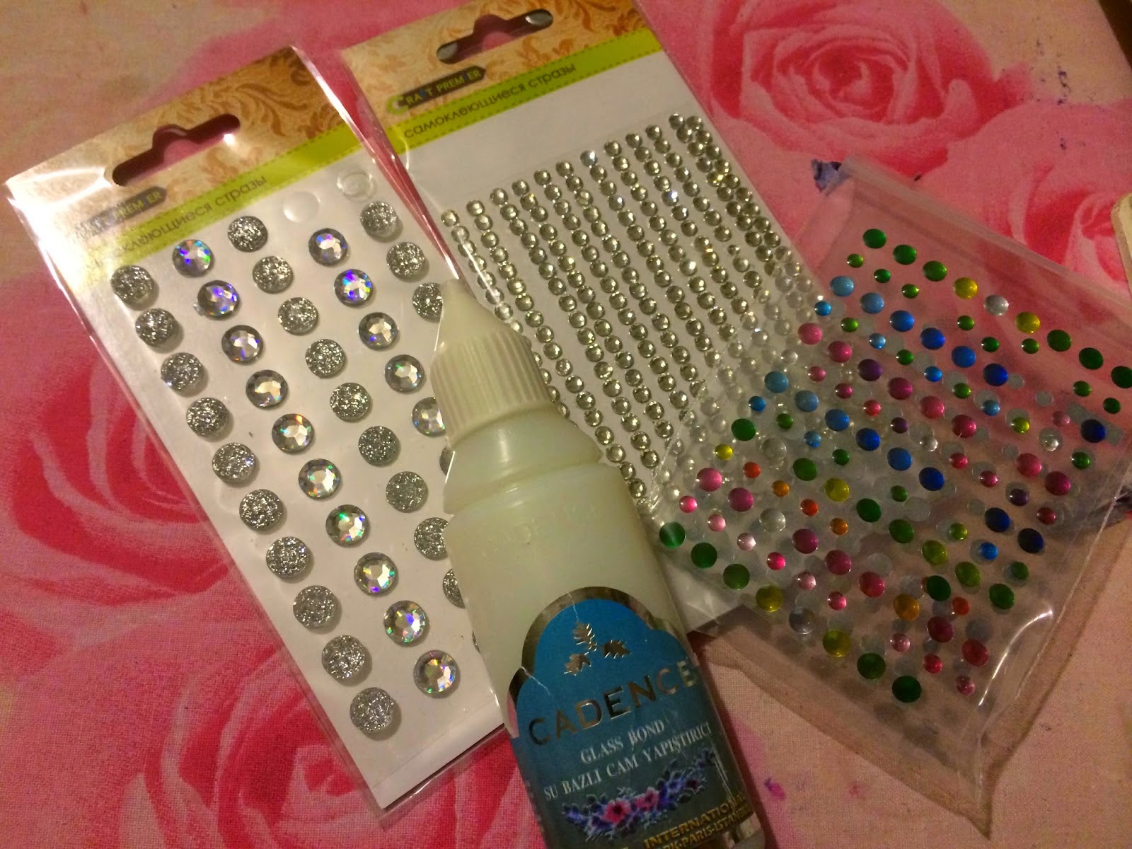 Я, как большой любитель страз, очень часто их использую. Как правило, стразы продаются уже с клеевым слоем. Он подходит для бумаги, но не для дерева и других материалов, если Вы хотите, чтобы держалось долго и при частом использовании, нужно использовать клей для страз. Когда я работаю с такими стразами, я снимаю клеевой слой, его очень легко поддеть мастихином или любым другим плоским предметом. А чтобы стразы держались крепко на любой поверхности я использую "Специальный клей для страз CADENCE".