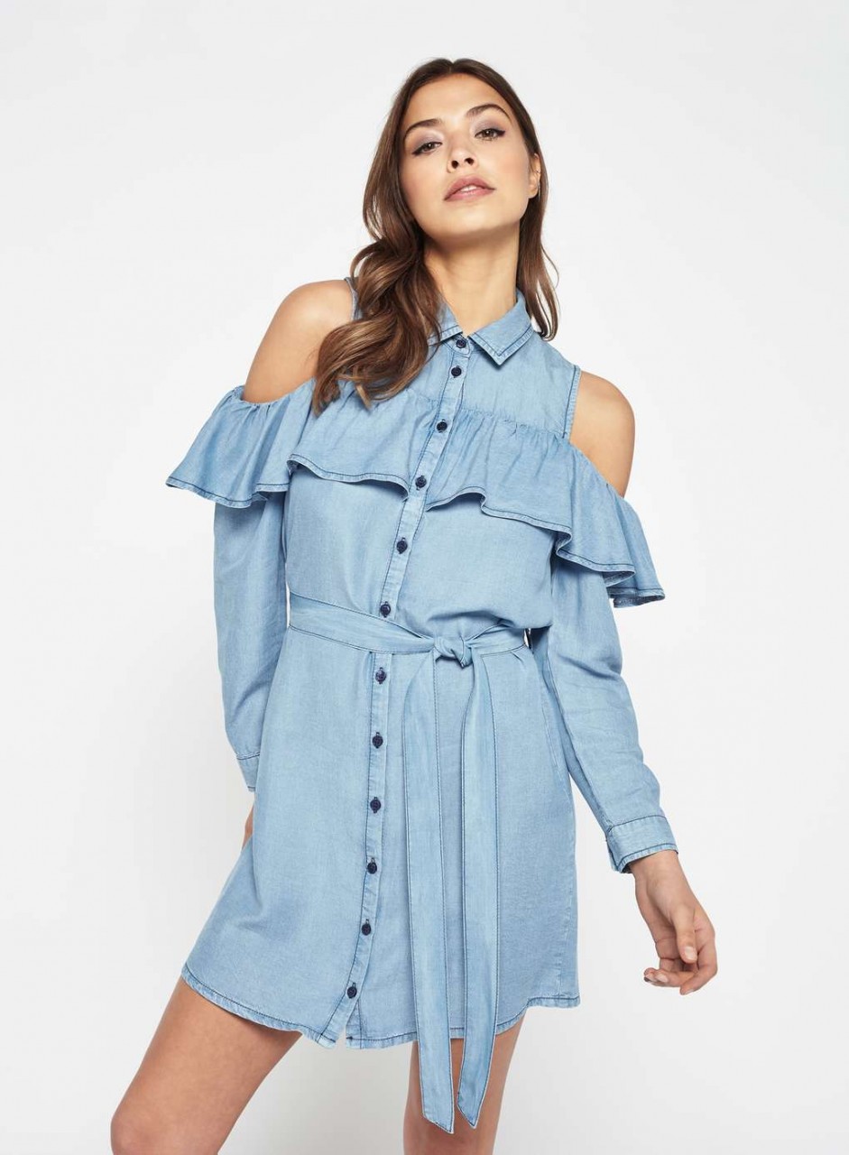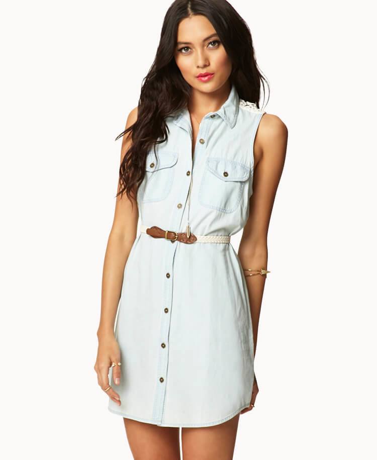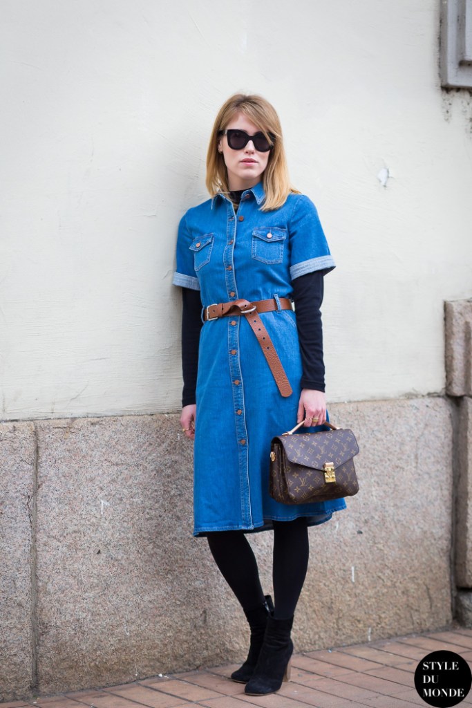 Выбирайте модели в традиционных для денима тонах. В моде платья с плетенными поясами, отсылающие нас к свободному стилю бохо или гранж. В городских условиях такой наряд более чем уместен. Надевайте под джинсовое платье-рубашку легкие кеды, босоножки, лоферы. В качестве аксессуаров используйте не броскую бижутерию. Тонкой цепочки с кулоном и пары браслетов на руках будет достаточно.
