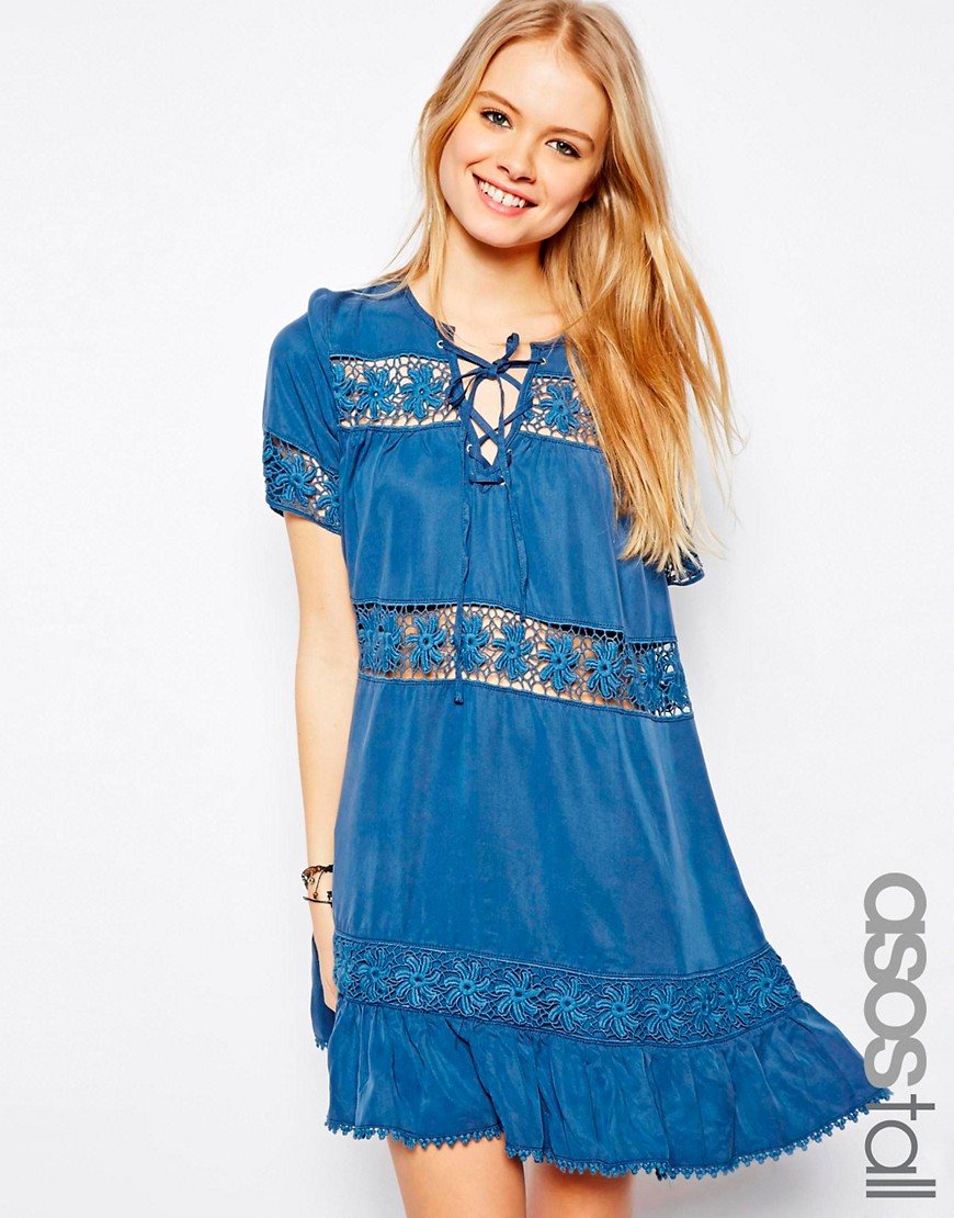 Модели с нежным кружевом подойдут молодым романтическим особам. Они выглядит стильно и привлекательно, подходят для повседневных прогулок, свиданий и других событий. Идеально смотрятся модели с расклешенной юбкой, где декольте и вырез на спине украшены кружевом. Под такой образ подойдет обувь на танкетке, которая подчеркивает стройные и длинные ножки своей обладательницы.