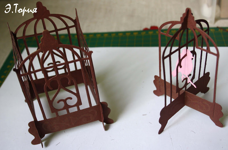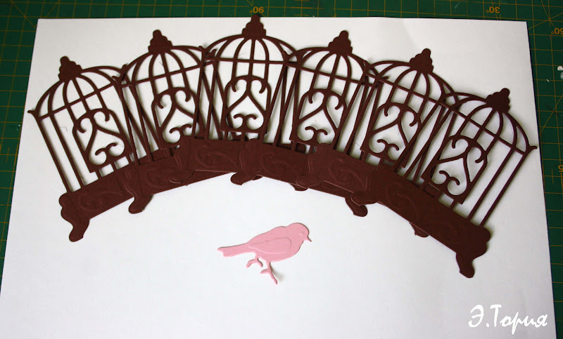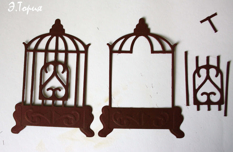 Для создания этой клетки нам потребуетя Набор ножей Spellbinders Bird Sanctuary (6 вырубок большой клетки и 1 вырубка маленькой птички). Изначально такую клетку придумала Becca Feecen и описала способ ее сборки - как объемный раскладывающийся элемент внутри открытки. Я решила немного упростить авторскую конструкцию для своей клетки и сделать ее привлекательным украшением интерьера.