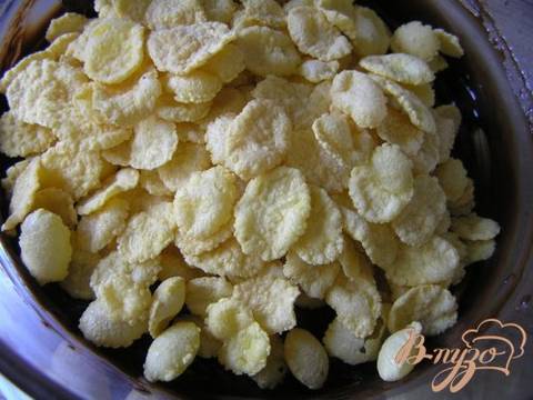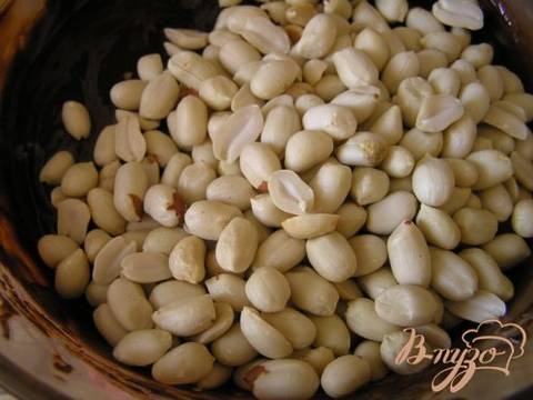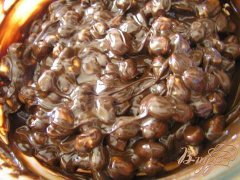 Растопить вторую половину шоколада, добавить оставшееся сливочное масло, перемешать, всыпать обжаренный арахис