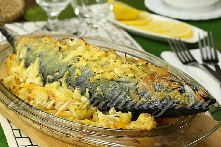 Скумбрию в сметанно-горчичном соусе можно приготовить вместе с картофелем и цветной капустой. Из картофеля получится замечательный гарнир.