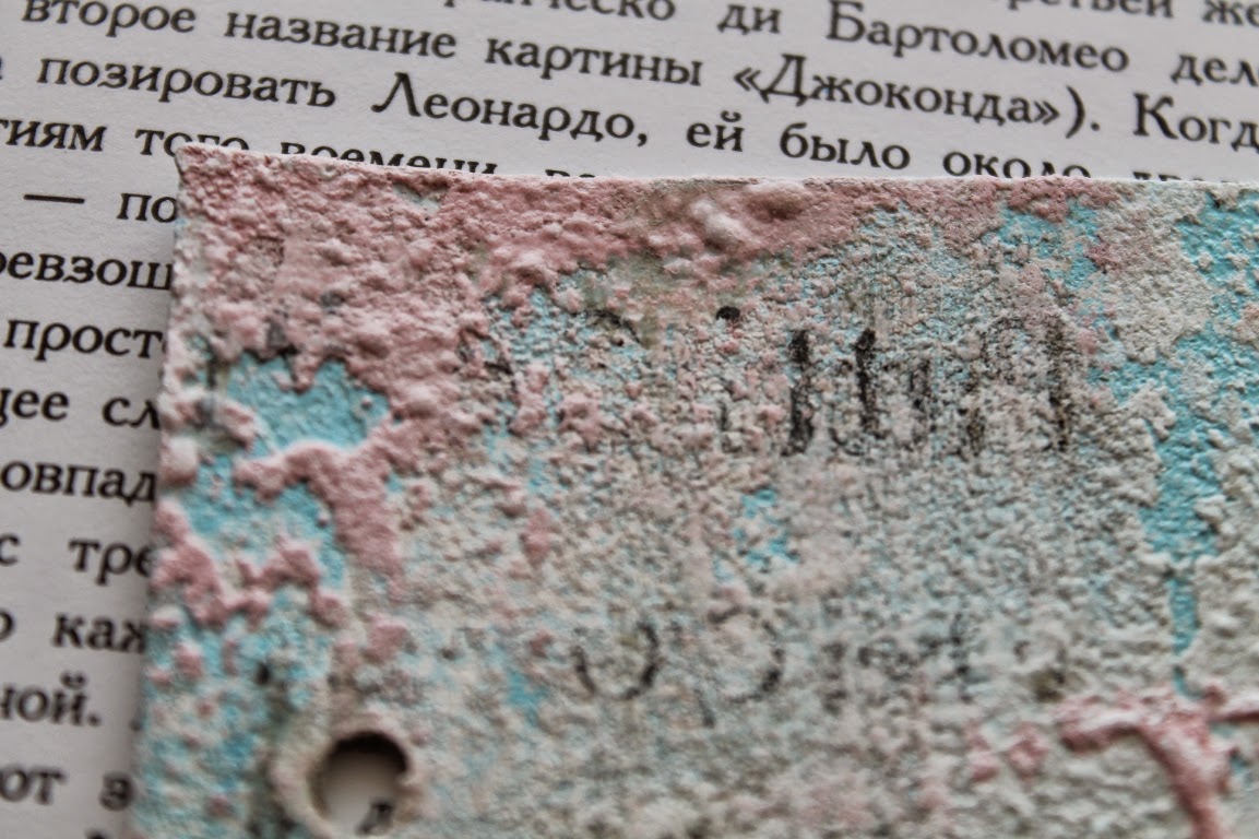 - в содовую пасту (акриловый грунт + сода) можно добавлять любые акриловые краски, получая при этом цветную пасту. Она сохраняет свои свойства: так же вздувается при нагревании и создает слегка зефирную шероховатую текстуру.