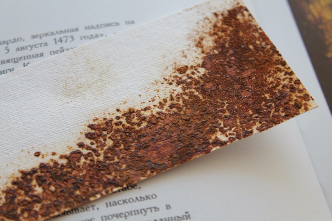 Еще недавно для имитации ржавчины я использовала акриловую краску, которая называется умбра жжёная. Но когда я попробовала с кофе (растворимым), то поняла, что для меня это идеальный вариант, выглядит более правдоподобно.