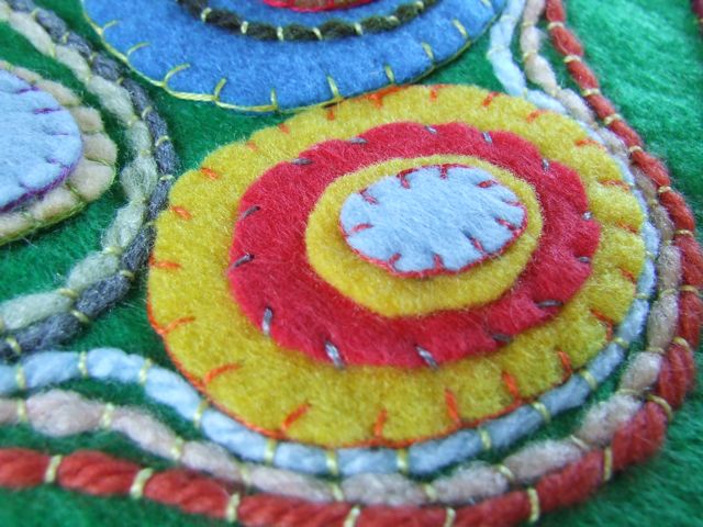 Вы можете фантазировать, выкладывая фетр в причудливые мотивы, и всегда результат будет разным. К тому же такой органайзер можно сделать для хранения спиц.