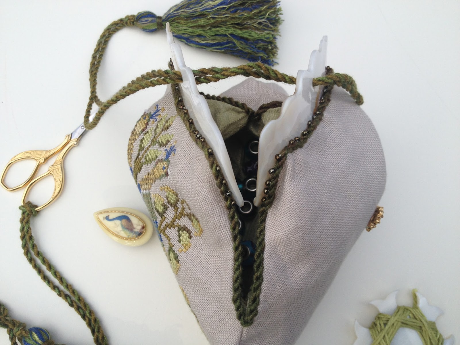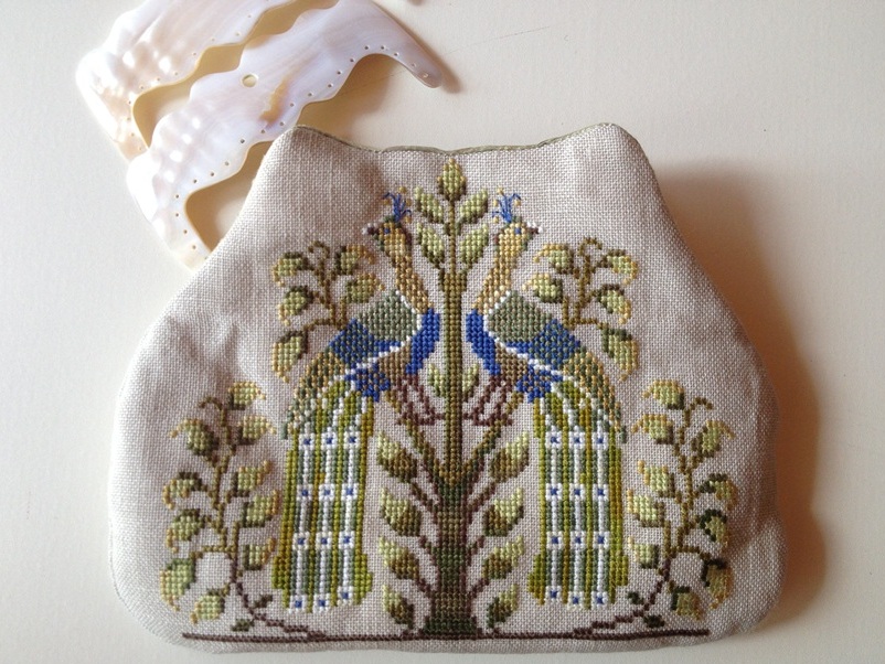 Имеем фермуар Kelmscott Designs и вышитый дизайн Giulia Punti Antichi - Italian Peacocks Purse.
