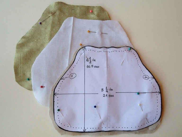 3. Вырезала по две детали из льна, флизелина и подкладки (выкройка уже дана с припусками на швы).
