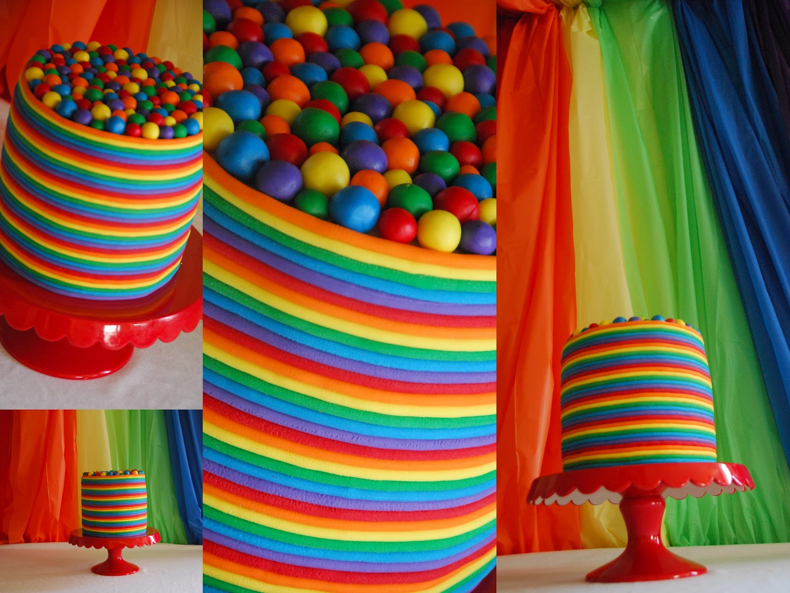 вот такие тоненькие колбаски для радуги можно попробовать сделать большим шприцомили специальным инструментом, или просто раскатать - будет просто чуть потолще из окрашенной той же краской мастики, ну и чередовая цвета обмотать вокруг торта