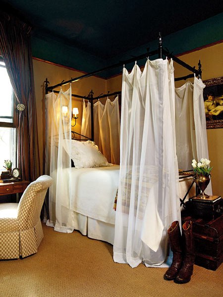 Спальня в романтическом стиле – это, прежде всего, место для двоих влюбленных. Поэтому, здесь не должно быть много женского (оборки, рюши, розовый цвет) или исключительно мужского. Цветовая гамма подбирается преимущественно в пастельных теплых тонах. Основным элементом интерьера спальни является кровать. Она должна быть широкая и удобная. Оригинальность в обстановке придаст прозрачный балдахин, а также под цвет подобранное постельное белья и шторы для окон.