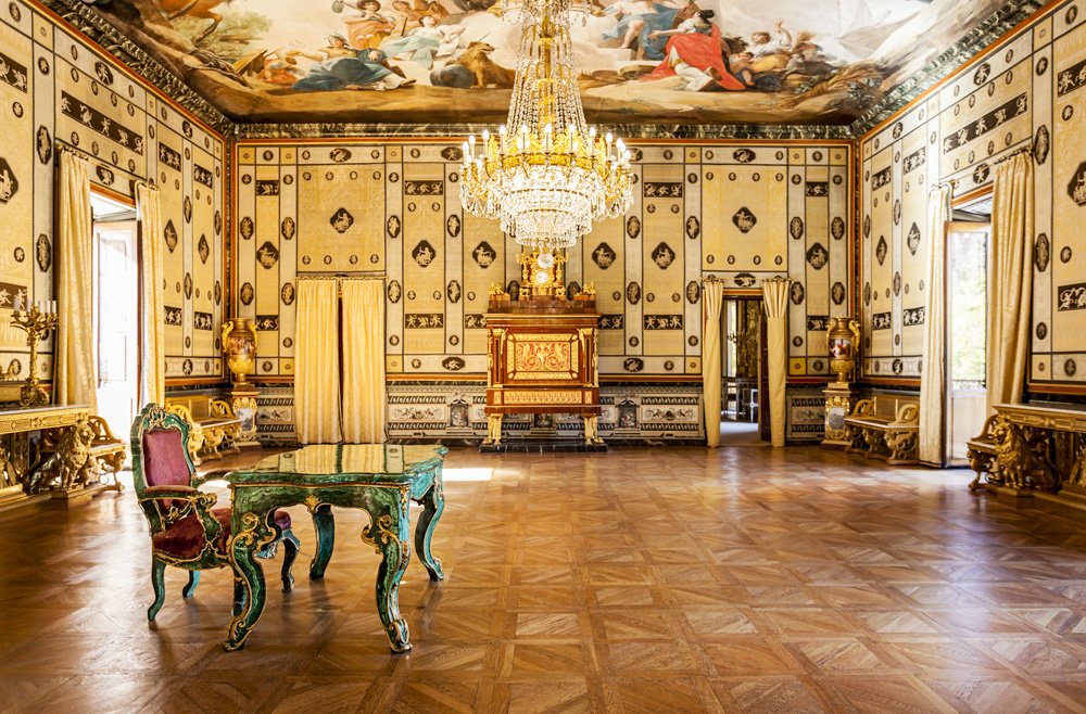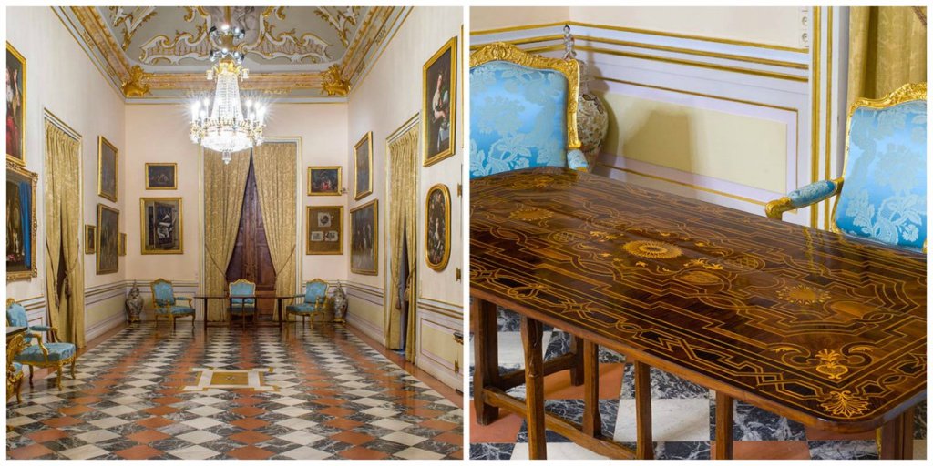 На нижнем этаже дворца выставлялась коллекция скульптур Кристины (королевы Швеции). В 19 веке эти скульптуры были перенесены в музей Прадо, а на их месте установили их репродукции.