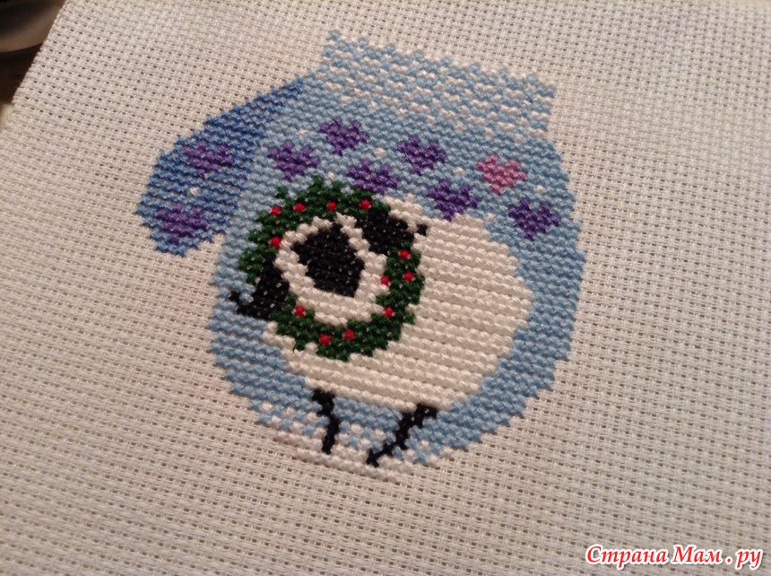 Вышиваем заготовку для верхней части варежки: