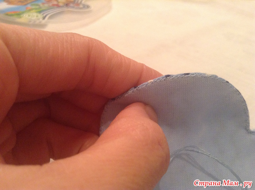 Подгибаем ткань пальцами и сшиваем.