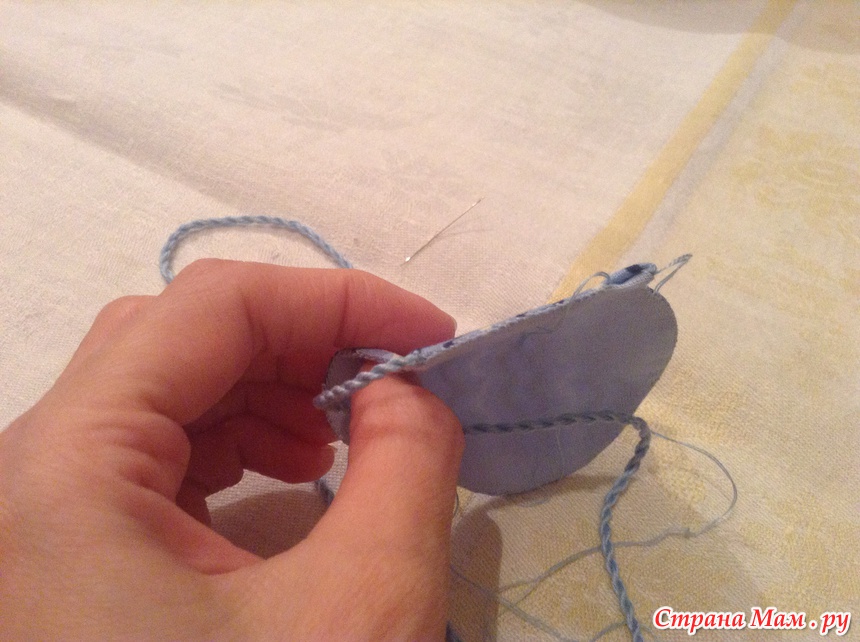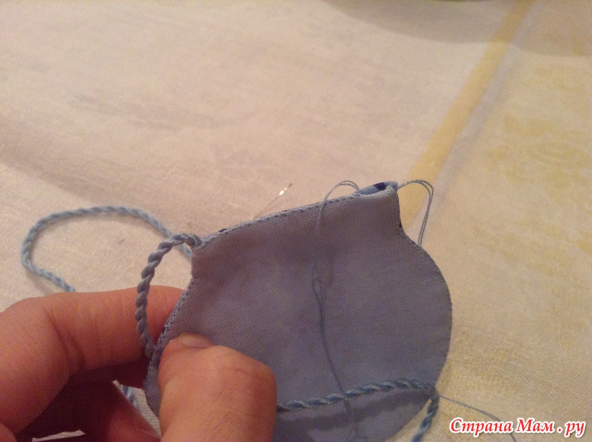 Оставляем сверху маленькое отверстие, спрячем здесь кончик шнура после всех наших манипуляций.