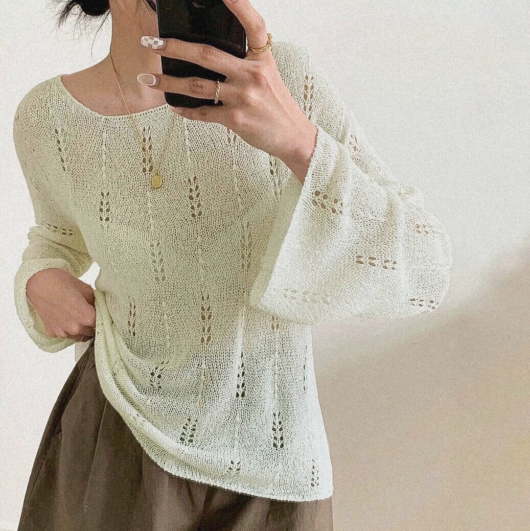 Красота в простоте! Эта модель тому явное подтверждение. Джемпер свободной посадки с широкими прямыми рукавами выполнена незамысловатым, но симпатичным узором в виде листьев, с которым справится даже начинающая рукодельница.