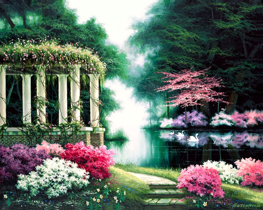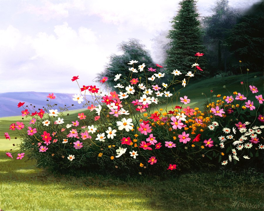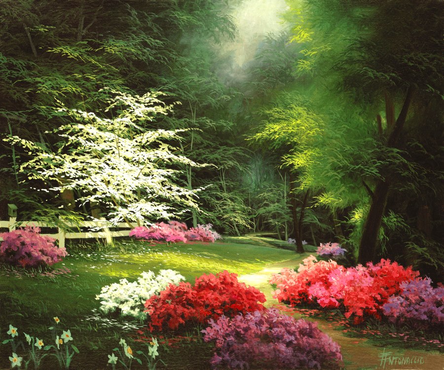В 1981 году, Antonaccio приехал в Соединенные Штаты и сделал Северная Каролина своего дома. Горы, залитые солнцем долины и тенистых склонах холмов стали неиссякаемым источником вдохновения для художника. По всей территории страны, Antonaccio в основном известный своими цветочными пейзажи, тематика которых варьируется от элегантность сад в уединенном поместье простоте путь с кизила деревья и кусты азалий. Его техника легкий и нежный, и его тематика романтические и нежные; каждая картина вызывает ощущение силы, благодати и изумлением. Из цветочных садов, богато foliaged и наполнена летними ароматами, к огромным панорамным видом холмов и долин, Antonaccio мульти-талантливого с гениальное воображение.