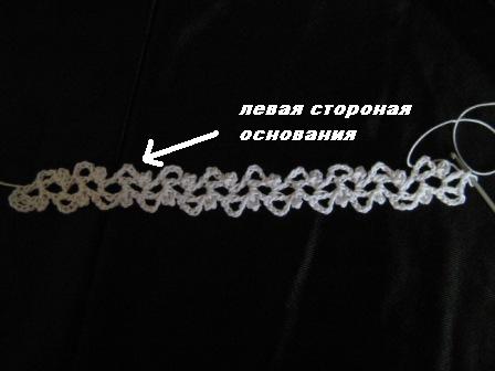 Вдоль правой стороны основания у нас получилось 12 арочек из 5-ти ВП, далее мы будем вязать так: