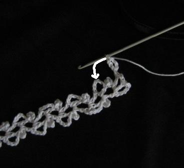 А: с следующую арочку провязать 5ССН с одной ВП между ними, 1СБН в следующую арочку;
