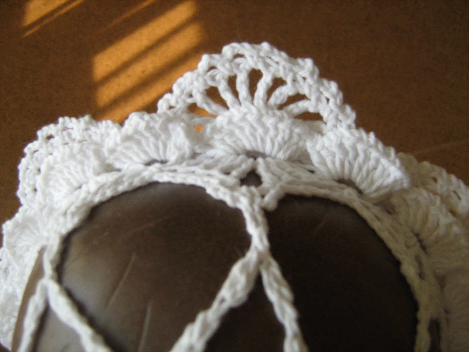 Г: 1СБН в первую арочку следующей ракушки, (3ВП, 1СБН в следующую арочку) х повторять вдоль всей ракушки, 4ВП, соединительный столбик в верхушку последнего СБН;
