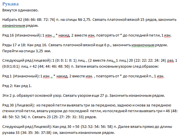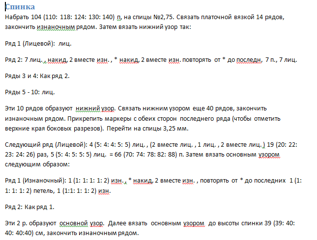 Платочная вязка спицами № 2,75: 26 петель и 52 ряда = 10 х 10 см.