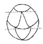 Нарисуйте два полумесяца, касающиеся разделительных линий.
