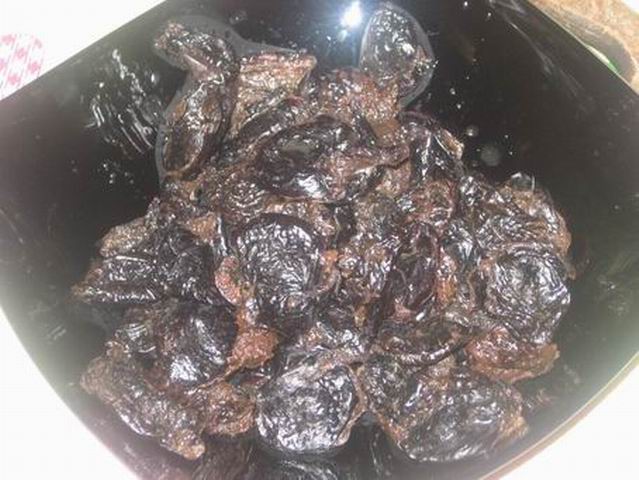 Сначала промыть и ошпарить чернослив. Потом слить, чтоб он обсох от воды.