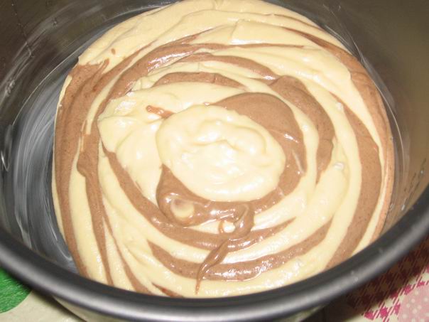 Тесто делим на две части, в одну добавляем какао, тщательно перемешиваем.