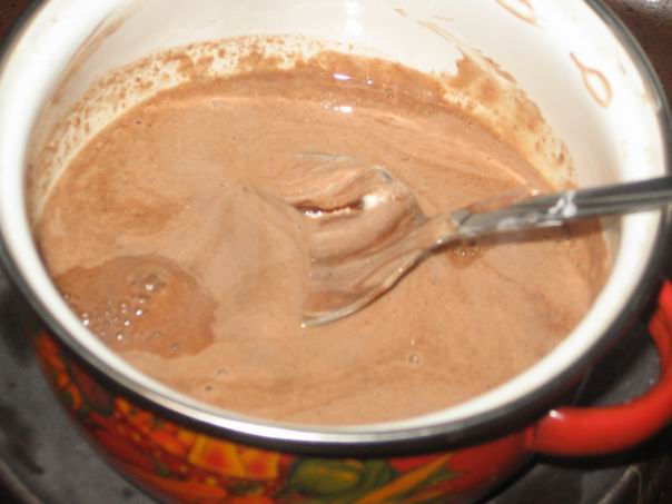 В этот раз сверху наложила слой помадки(сметана+какао), без сахара, чтоб не было слишком сладко.