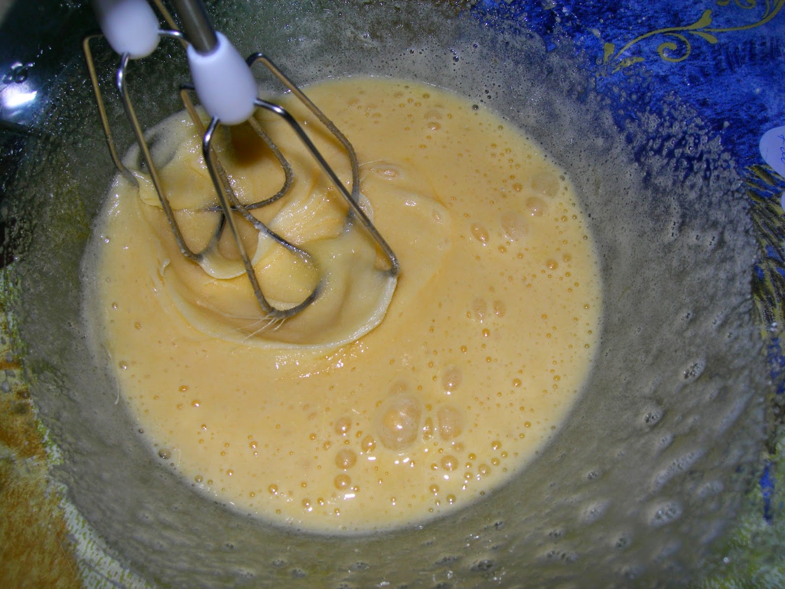 Все взбивала миксером. Тесто мне показалось густым, поэтому я добавила 50 мл молока.