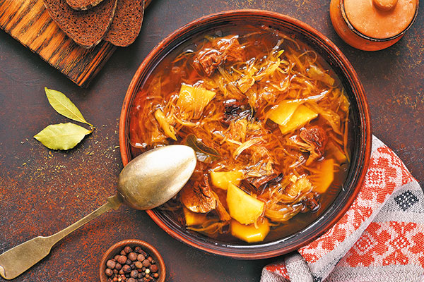 Знаменитый античный философ и математик Пифагор уверял, что она «представляет собой овощ, поддерживающий бодрость и веселое, спокойное настроение духа». Римский император Диоклетиан удалился от дел, чтобы растить ее — заветную, пузатенькую, сочную. А на Руси капусту сажали нежно, с любовной обстоятельностью, тихонько приговаривая: «Не будь пустая, будь густая; не будь голенаста, будь пузаста; не будь красна, будь вкусна; не будь мала, а будь велика!» Заговор этот работает до сих пор, а стало быть — плевать на скептиков и не стесняйтесь разговаривать с рассадой! Ибо сказано: ни один рот без капусты не живет — и это сущая правда. Капуста хороша вареной, тушеной, жареной, запеченной и засоленной. В рагу, солянках, котлетках, голубцах, оладьях, маринадах, салатах и, наконец, в волшебных щах, о которых стоит сказать отдельно. Щи бывают быстрыми и нежными — из молодой капусты, фермерскими — с репкой и саго, донскими — на рыбном бульоне да с расстегаями, суворовскими — без картошки, но с перловкой, боярскими — с грудинкой, ветчиной и гусем, сборными — на бульоне из копченостей, по-мещански — с вареными сосисками и гренками из гречки-размазни, ну и, конечно, густыми и наваристыми кислыми. Щи особенно хороши славными промозглыми осенними вечерами, когда хочется чего-то обжигающе горячего, вкусного и основательного. Кушать же их должно так, как велит книга «Русская кухня в изгнании»: «Есть щи надо с громадным количеством свежего черного хлеба, нарезанного ломтями толщиной с руку. Никакого второго в этот день не готовят. Дай Бог управиться с таким первым».