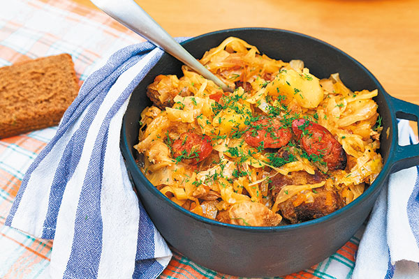 В другой день можно готовить, что вздумается. Это и красный-прекрасный салат с орехами и нежной заправкой. Острая корейская капустка кимчи, дерзко спорящая с традиционной квашеной. Заслуженно почитаемые на всем белом свете плотные и сочные голубцы. Польский аппетитный бигос, одинаково, впрочем, любимый в Германии и в Прибалтике. Пирог с капустой, похвастать которым могли бы многие кухни мира. А захотите удивить гостей — сварите капустное варенье, рецепт коего таков: берем кило капусты и два с половиной килограмма сахара. Капусту мелко шинкуем, перетираем с двумя стаканами сахара, добавляем чайную ложку лимонной кислоты, благословив, оставляем на час. Из оставшегося сахара варим сироп: растворяем его в литре воды, доводим до кипения. Капусту отжимаем, кладем в сироп, варим до загустения, снова добавляем лимонную кислоту — на сей раз две чайных ложки! — для вкуса и аромата бросаем несколько семян аниса, раскладываем по банкам, закатываем. Едим зимой с чаем, добавляем в пироги и ватрушки, радуемся жизни и вспоминаем лето — в компании с капустой это просто.