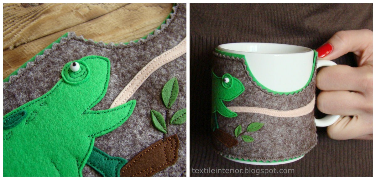 Лана_Берг Оригинальное сообщениеЕще наряды из фетра для кружек.Колибри и хамелеон.