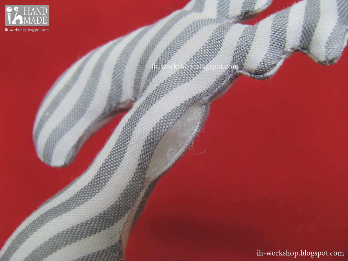 Вывернули, хорошенько расправили все выпуклости на рожках, мордашке и уголки ножек.