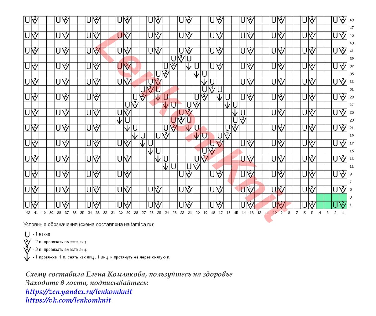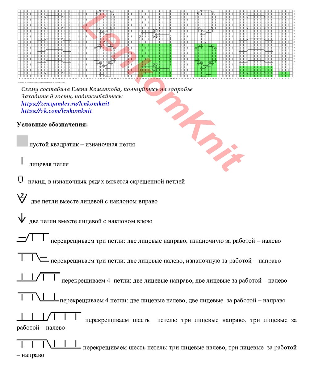 Зеленым цветом выделены раппорты отдельных узоров на схеме.