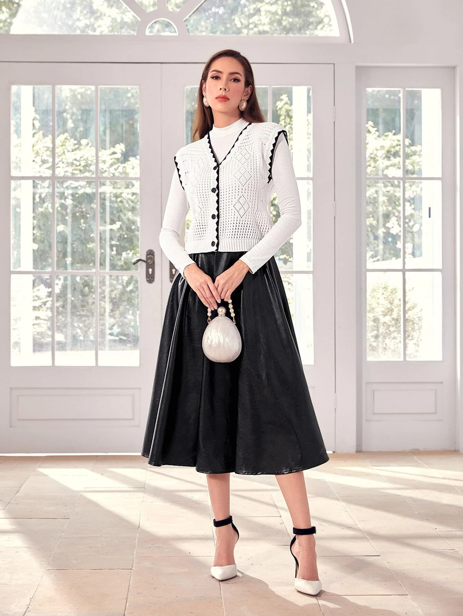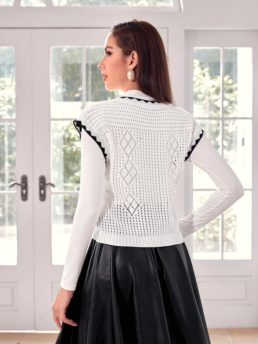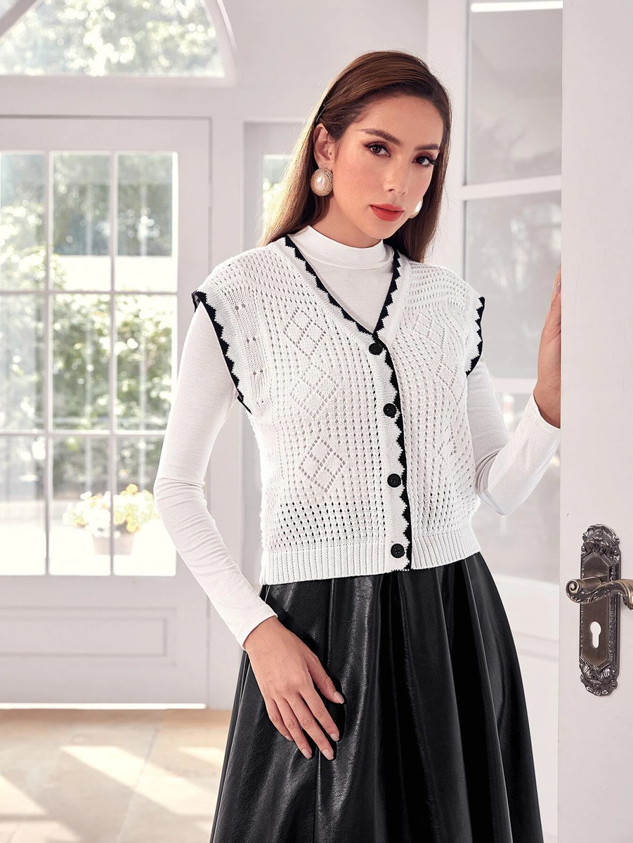 Четвертая безрукавка - самая узорчатая в этой подборке. Предприимчивые азиаты позаимствовали эту модель у кого-то из известных модельеров. Я сохранила на нее ссылку, но безрукавку быстро купили, и страница в интернет-магазине пропала. Я не успела даже запомнить бренд. И вот, она нашлась в каталоге Shein. Конечно же уступает брендовой модели и по качеству, и по внешнему виду, но тут главное - суть.