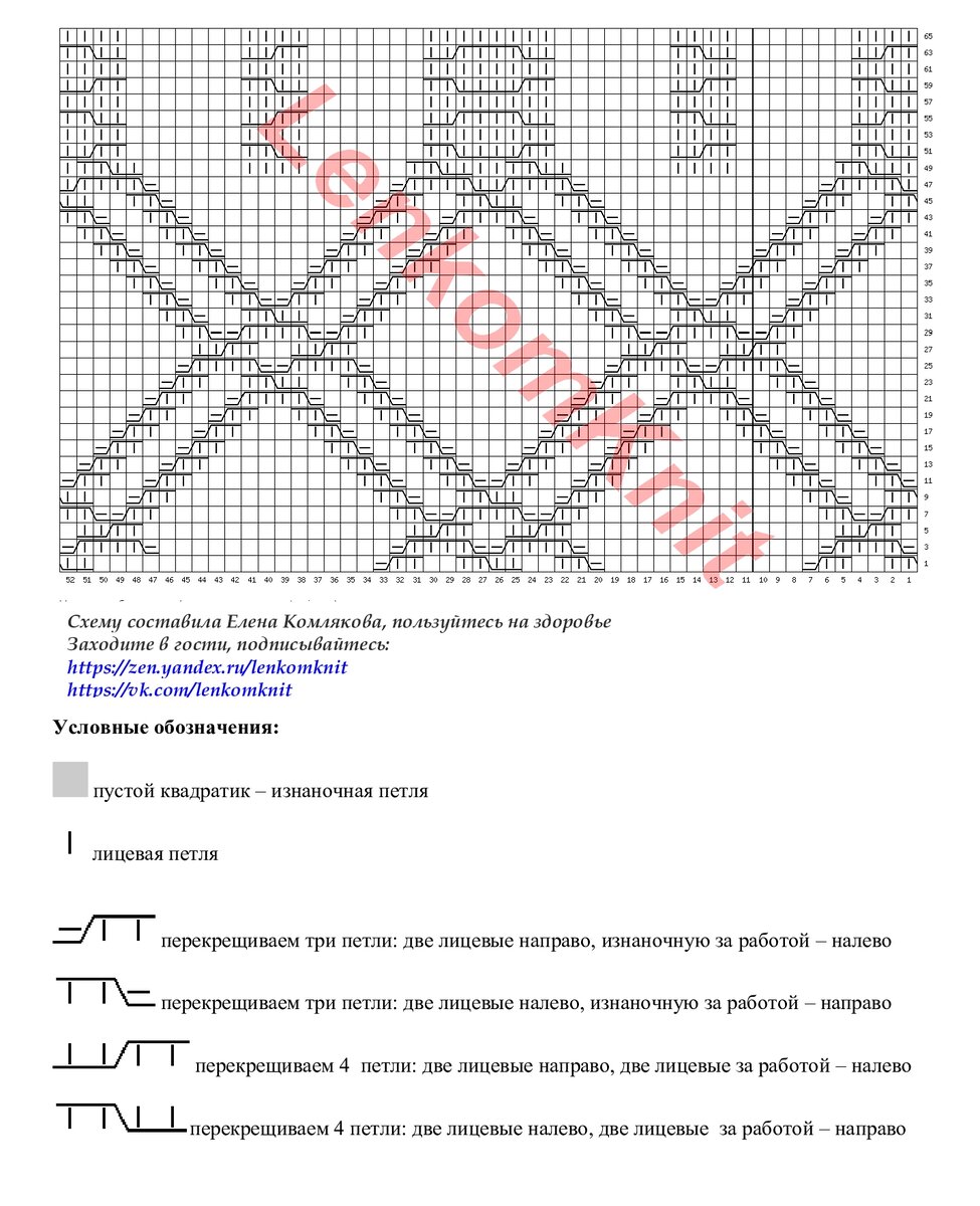 На рисунке ниже нарисована схема узора. На вид, этот узор очень простой - ромбы. Но не все так просто, со схемой пришлось повозиться (из-за разных перекрещиваний двойных ромбов).