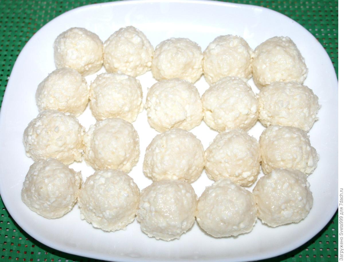 Формируем 20 шариков размером с грецкий орех и ставим в морозильную камеру на 30 минут.