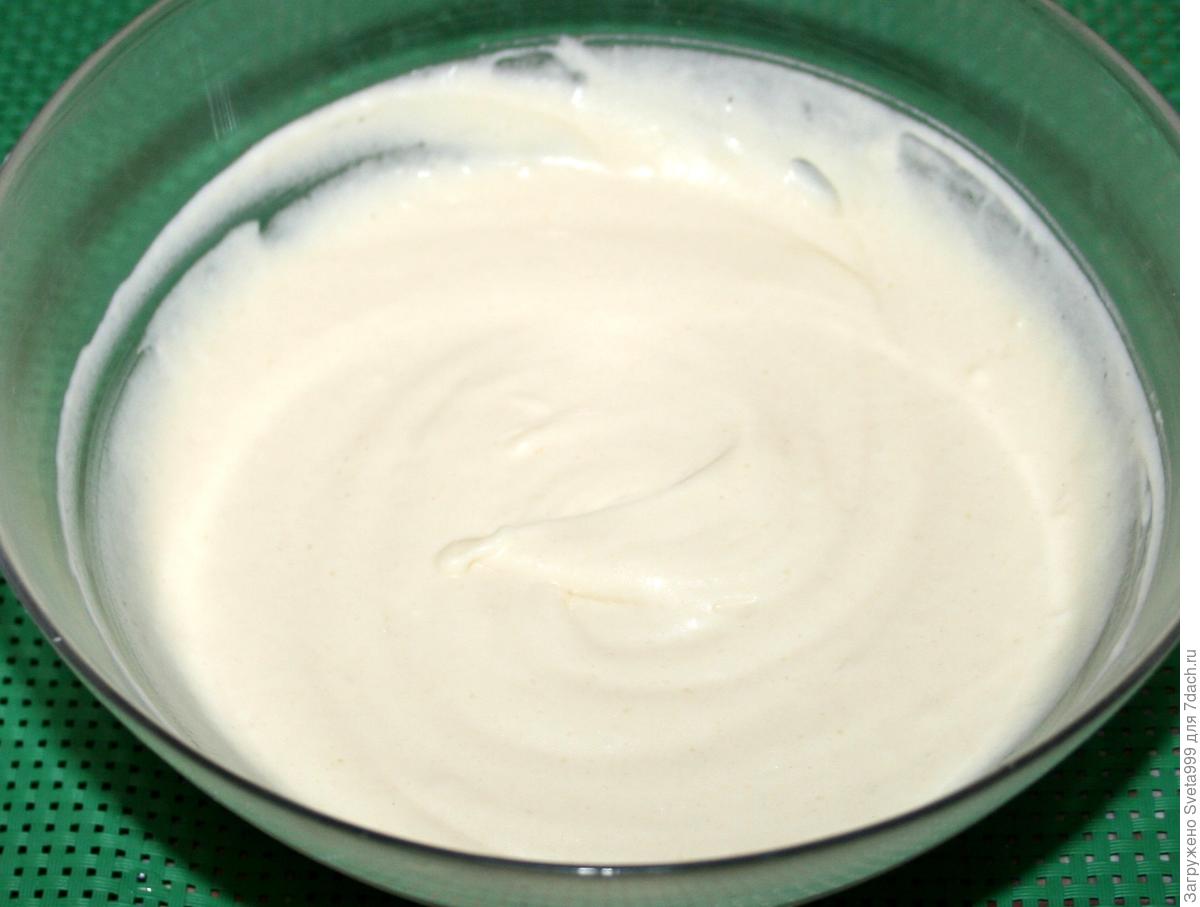 Традиционно такой пирог готовят с заварным кремом и сверху посыпают какао-порошком, но я немного отошла от рецепта и приготовила такой пирог с моим любимым сметанным кремом и посыпала тертым шоколадом. Для приготовления сметанного крема нужно сметану смешать с 3 ст. ложками сахара.
