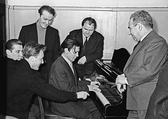 Ростислав Бойко, Родион Щедрин, Андрей Эшпай, Александр Холминов, Тихон Хренников и Матвей Блантер. 1962 год (фото: ИТАР-ТАСС)