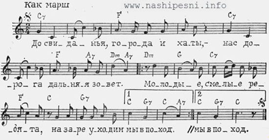 Война изменила всех и, конечно же, отразилась в сочинениях советских композиторов. В наш ген, национальный код вошли десятки потрясающих песен периода Великой Отечественной и послевоенных лет, и в этом ряду достойнейшее место занимают произведения М. Блантера. Первой его песней того периода стала «До свиданья, города и хаты» (слова М. Исаковского), написанная 23 июня 1941 г., с ней уходили на фронт новобранцы. |